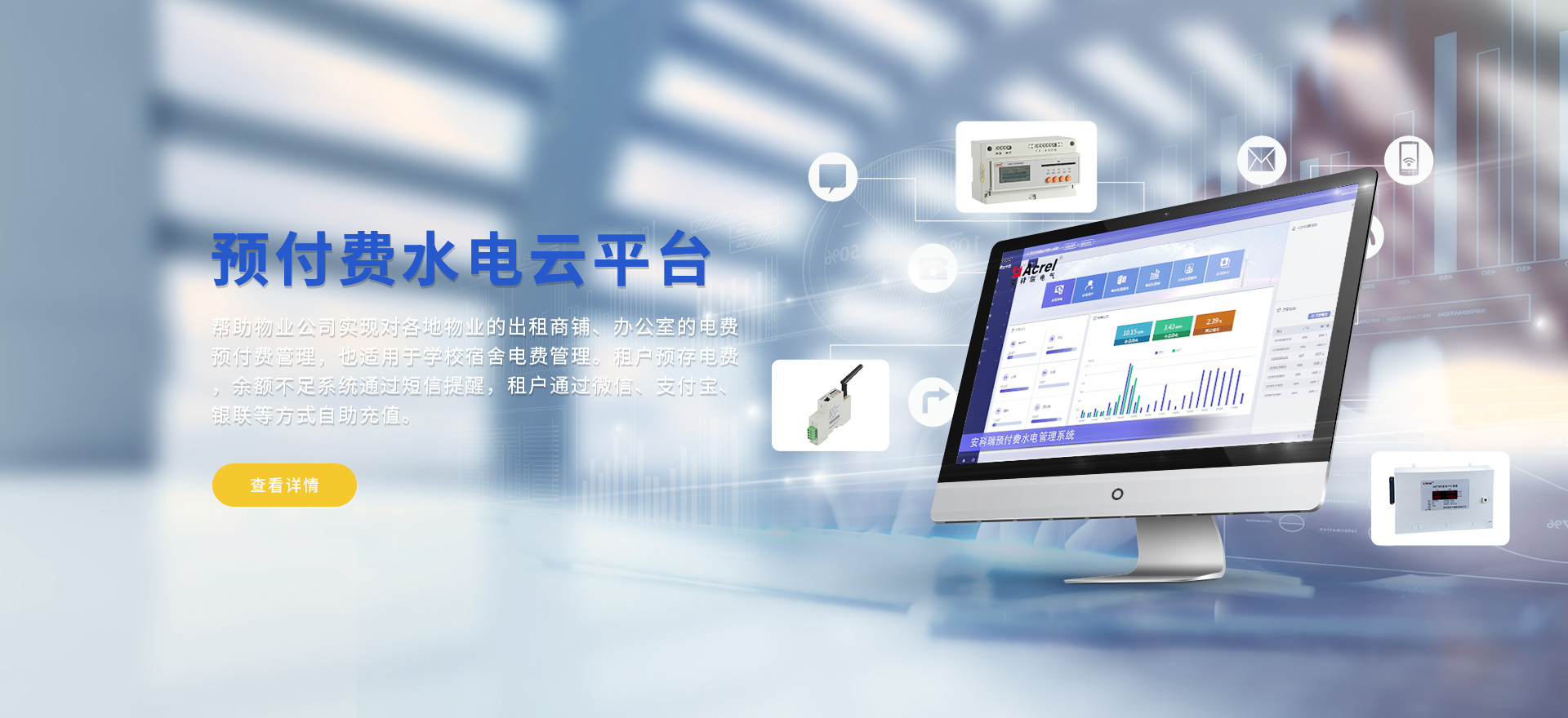 安科瑞提供的解決方案包括Acrel-EIoT能源物聯網云平臺、變電所運維云平臺、安全用電管理云平臺、環保用電監管云平臺、智慧消防云平臺能源管理云平臺、工業企業能源管控平臺、遠程預付費云平臺、餐飲油煙監管云平臺、電動汽車/電瓶車充電樁收費管理云平臺、電力監控/無線測溫系統、電能質量治理系統、電氣火災監控系統、消防設備電源監控系統防火門監控系統、應急照明和疏散指示系統、智能照明控制系統、醫用隔離電源絕緣監測系統等,幫助用戶實現能源智能化、可視化、精細化管理,提高用能效率和用能安全,為企業節能降耗和實現能源數字化建設提供數據服務。
